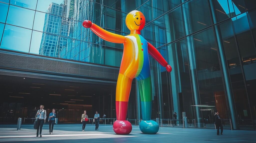 La relation entre la taille de votre bonhomme gonflable et les dimensions de l’espace environnant détermine l’efficacité de votre communication visuelle. Dans un environnement extérieur vaste comme un parking de centre commercial ou un terrain de festival, une structure de grande taille sera nécessaire pour se démarquer et être visible de loin. À l’inverse, dans un espace confiné tel qu’un hall d’exposition ou un showroom, une structure plus modeste évitera l’effet d’encombrement tout en conservant son pouvoir attractif.